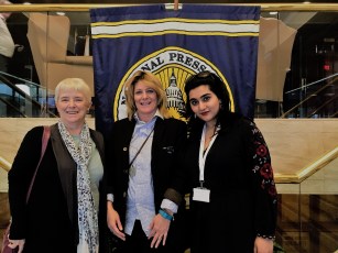 20 October: Three of us took time out later on Friday afternoon for a guided tour of the National Press Club, of which Diane Walsh is a member (and, like me, also a member of the GWPF Nominations Committee which selects Awardees). But mostly Friday was time to visit the Global Woman P.E.A.C.E. Foundation offices, meeting GWPF officials and volunteers and several 2017 Awardees, firstly at the GWPF address and, later, for those who could get there, at a delightful pizza supper hosted by Susan Gibbs.
