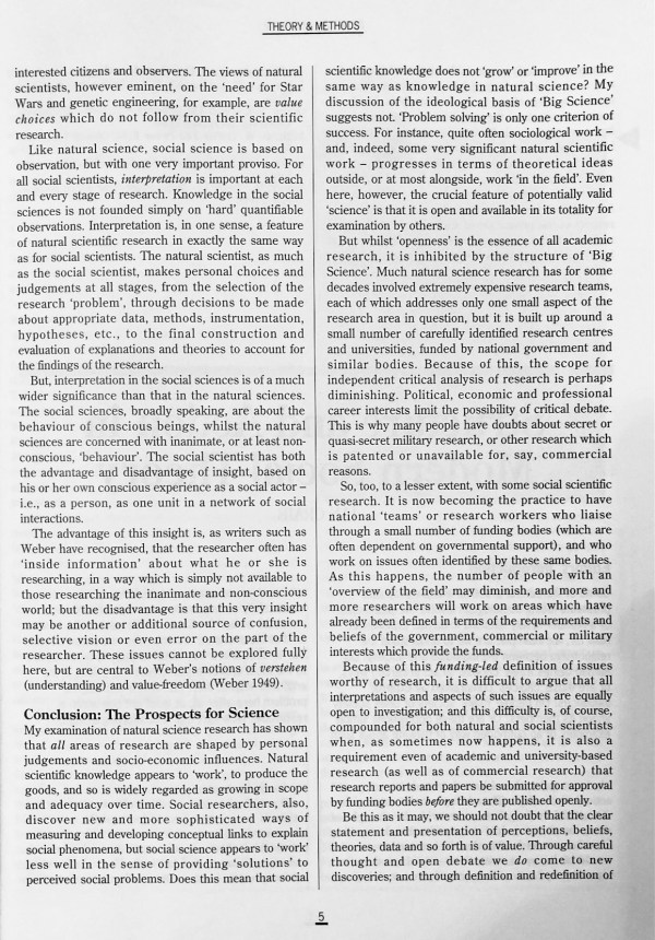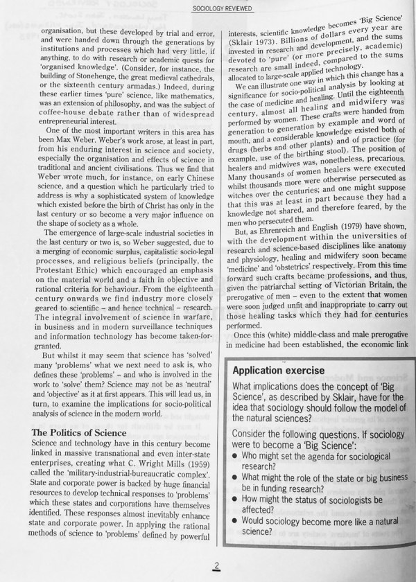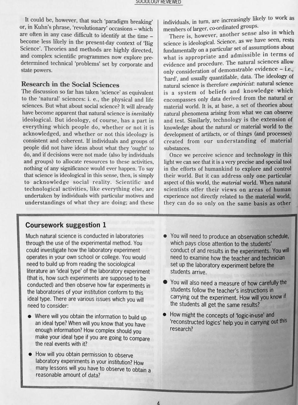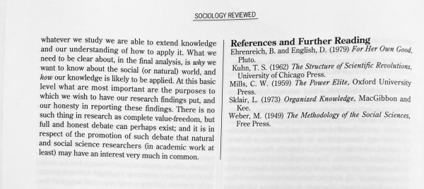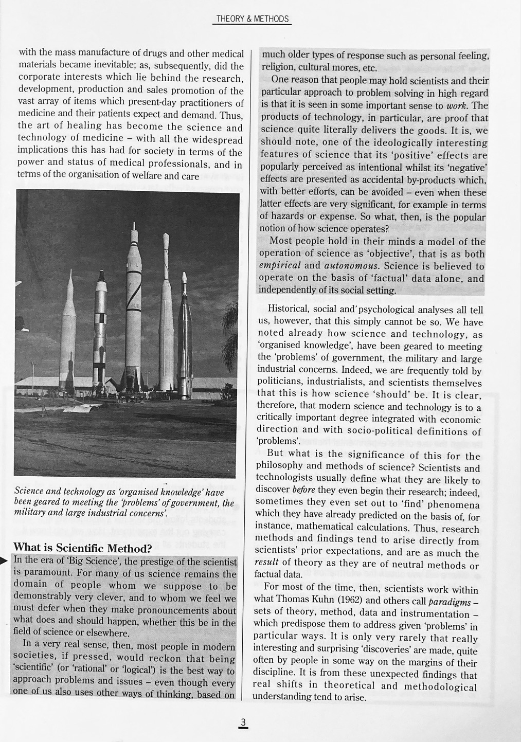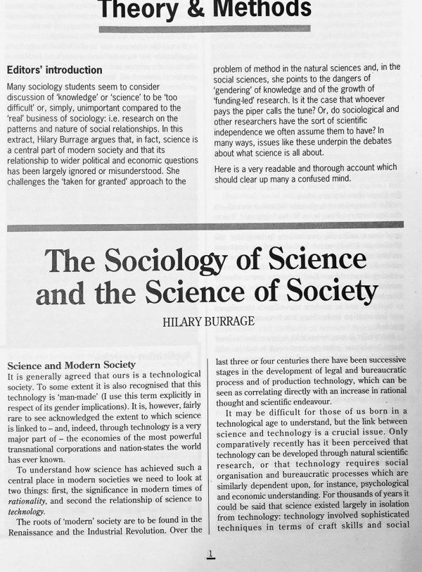 I was fascinated by it all: how research is chosen, funded and develops, and how ‘theories’ are constructed, both by real human beings via conscious and cultural choices . It was therefore a pleasure in 1993 to respond when the editors of Sociology Reviewed invited me to write about ‘The Sociology of Science and the Science of Society’ for their book.