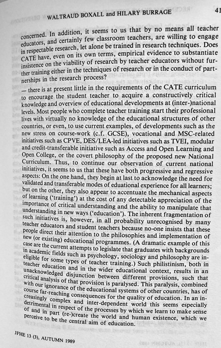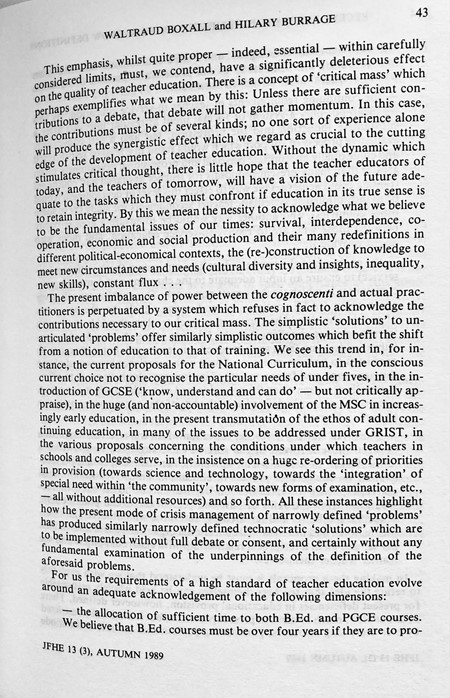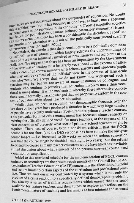 Indeed, these concerns continue to demand attention even now, so perhaps this is a good time to share the paper which Waltraud Boxall and I published in the Journal of Further and Higher Education (Volume 13, Number 3) way back in Autumn 1989?