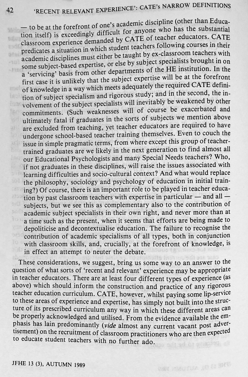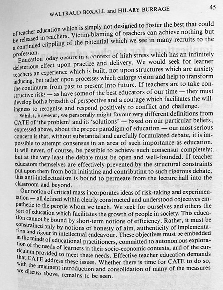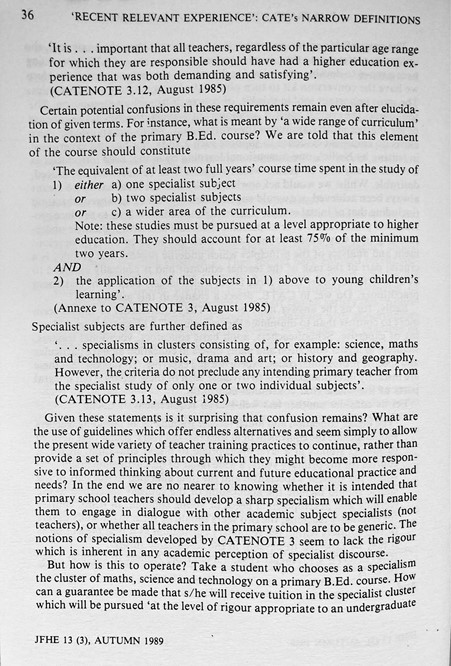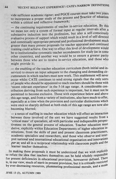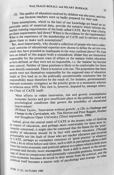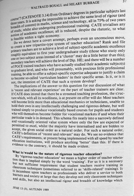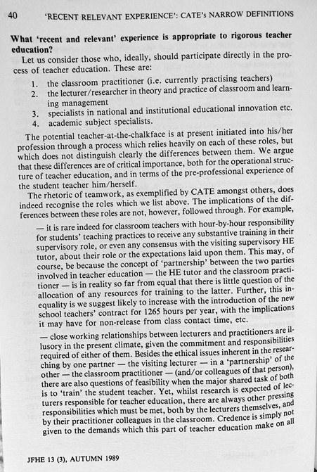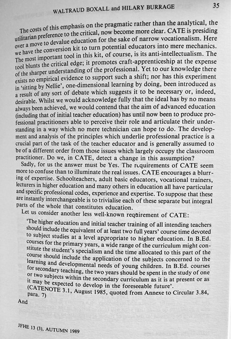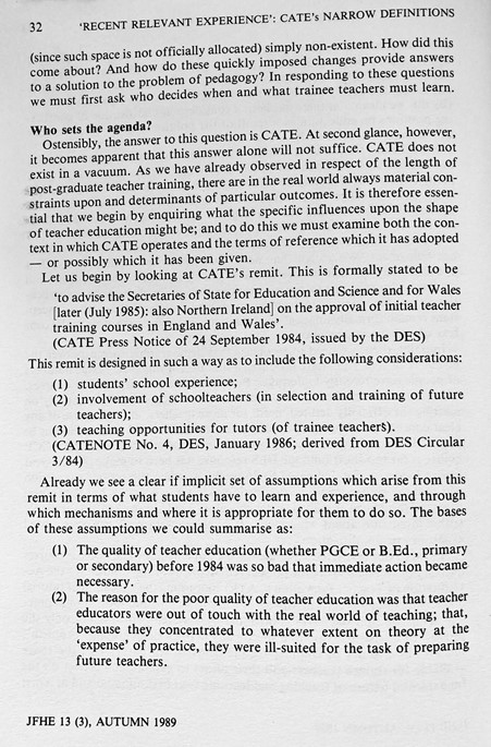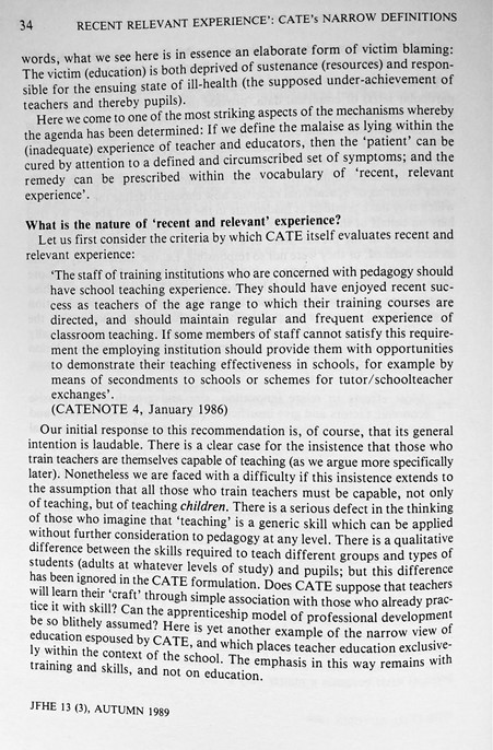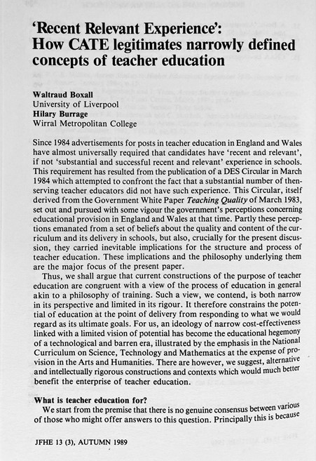 ‘Recent, Relevant Experience’: How CATE Legitimates Narrowly Defined Concepts Of Teacher Education (Boxall & Burrage, 1989)