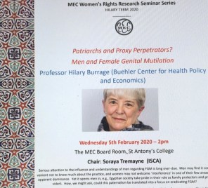 I visited St Antony’s College Middle East Centre, Oxford University, today (5 February 2020) as guest of Dr Soraya Tremayne, to give a presentation in the run-up to International Zero Tolerance for FGM Day tomorrow. My theme was the necessity to ensure that men are brought onside as activists to #EndFGM. I looked at ways in which, traditionally, men have been mostly unengaged in the realities of FGM (beyond their economic interests and an insistence on ‘purity’) and perhaps how, drawing on recent studies of masculine nurturative behaviour in Egypt, this might be changed.
