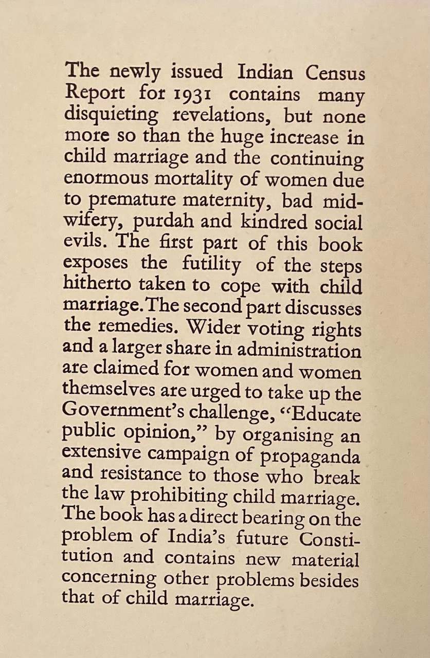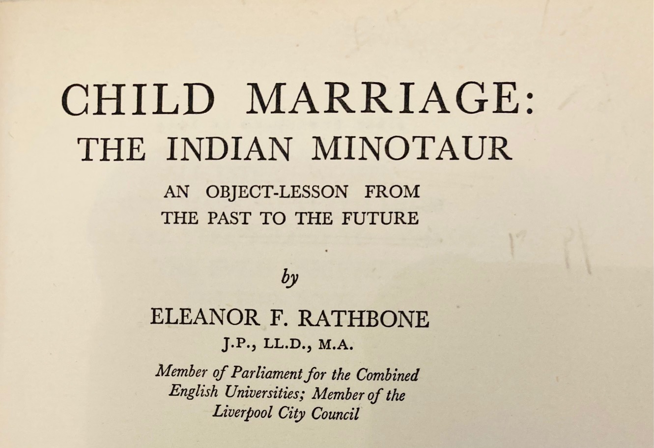 Eleanor Rathbone’s report is still available, as a book first published in 1934, and entitled Child Marriage: The Indian Minotaur (see above). Rathbone explains her reference to the Minotaur thus: