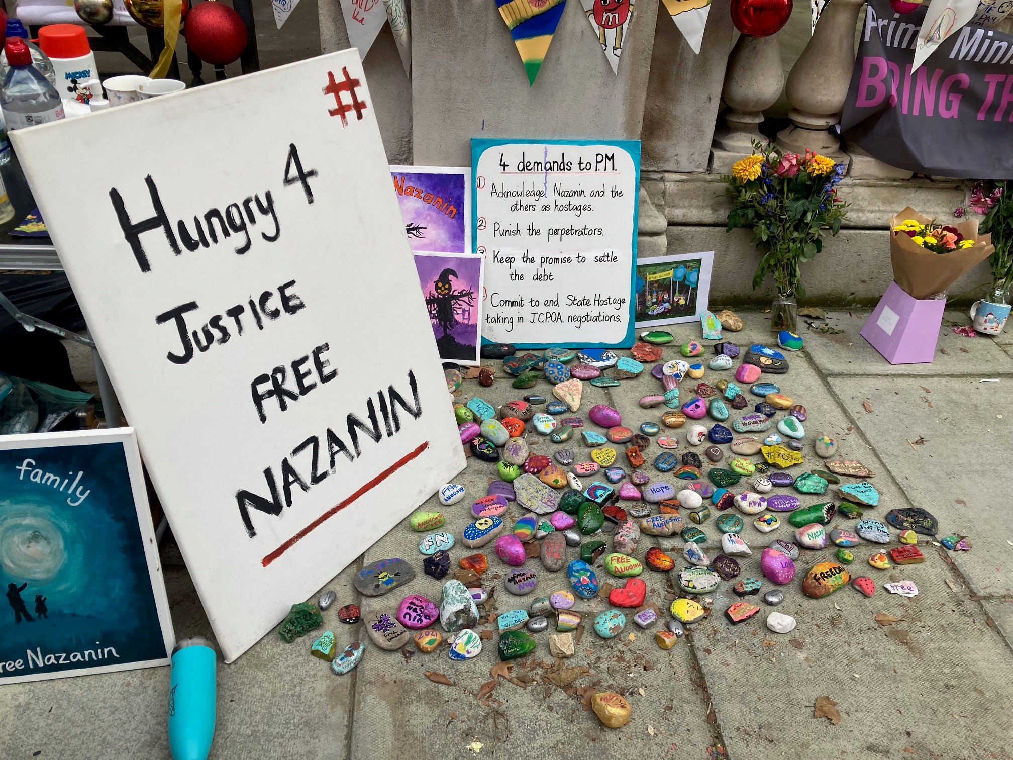 Both Nazanin and Richard have been on hunger strikes for her release before, but this month (November 2021) Richard has endured a longer, 21 days, vigil without food, camping out immediately opposite the main entrance to the Foreign Office in London. Richard’s fear is that Nazanin will shortly be returned from house arrest in her parents’ home to Tehran’s notorious Evin Prison, following a sadly unsurprising failed appeal regarding the latest court judgement that she was a threat to national security.