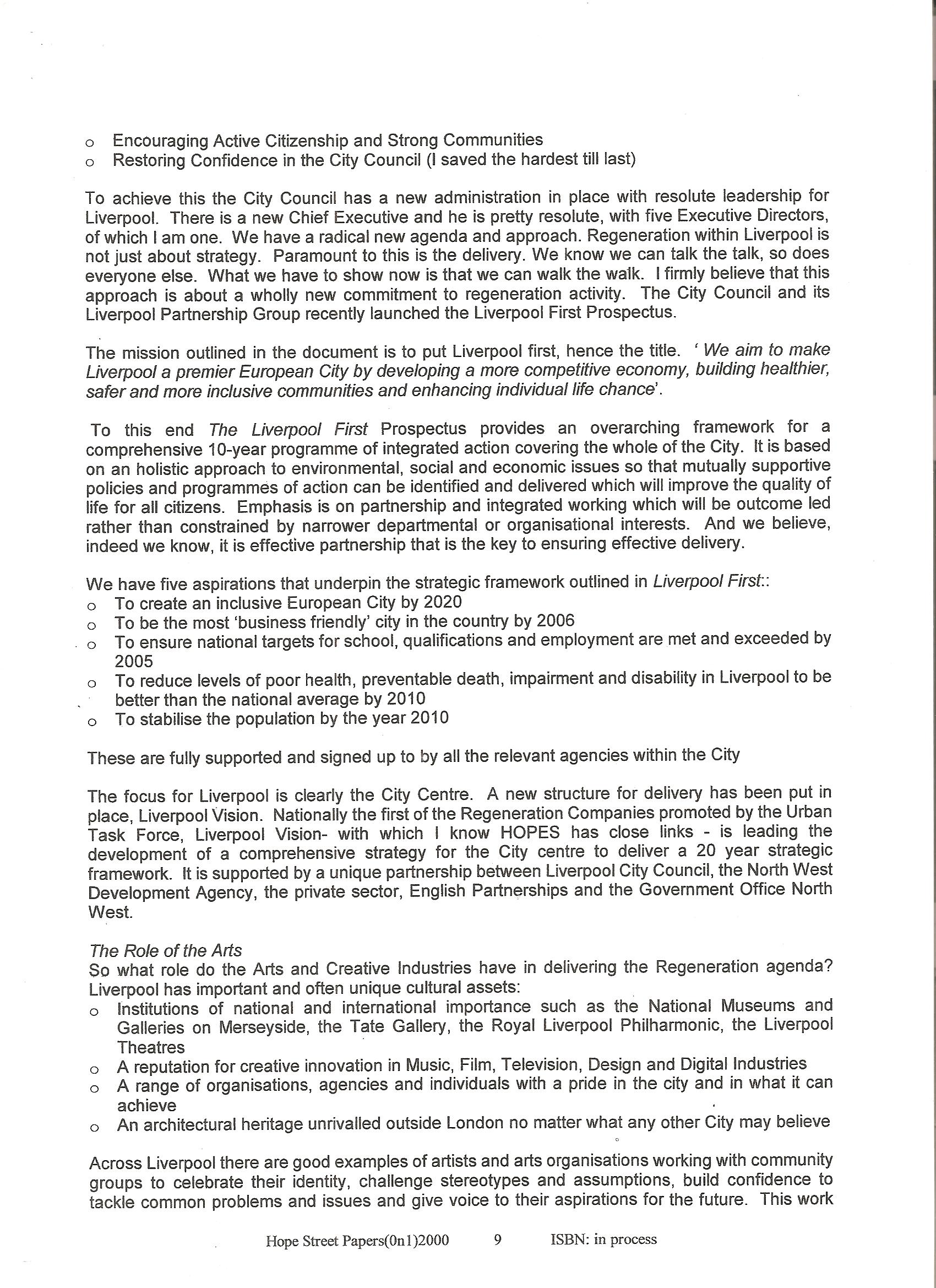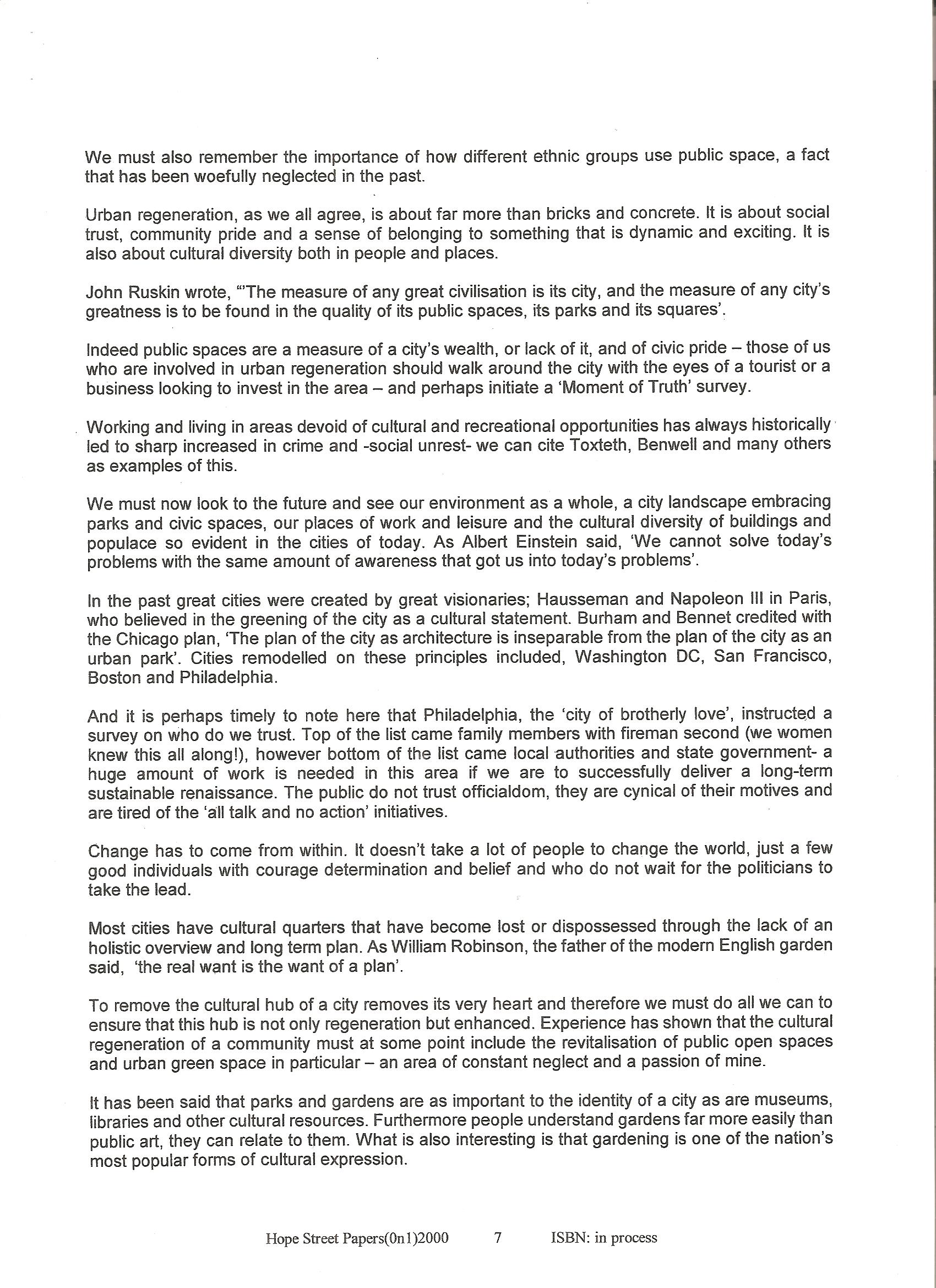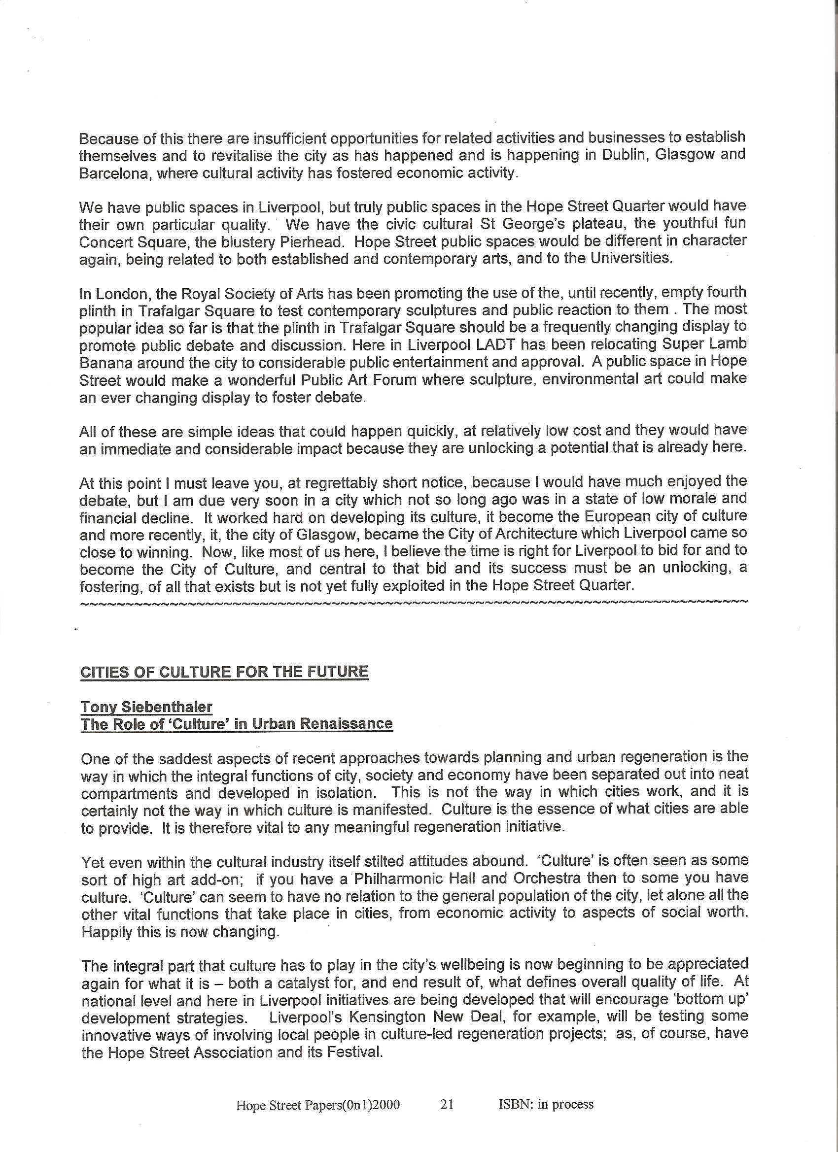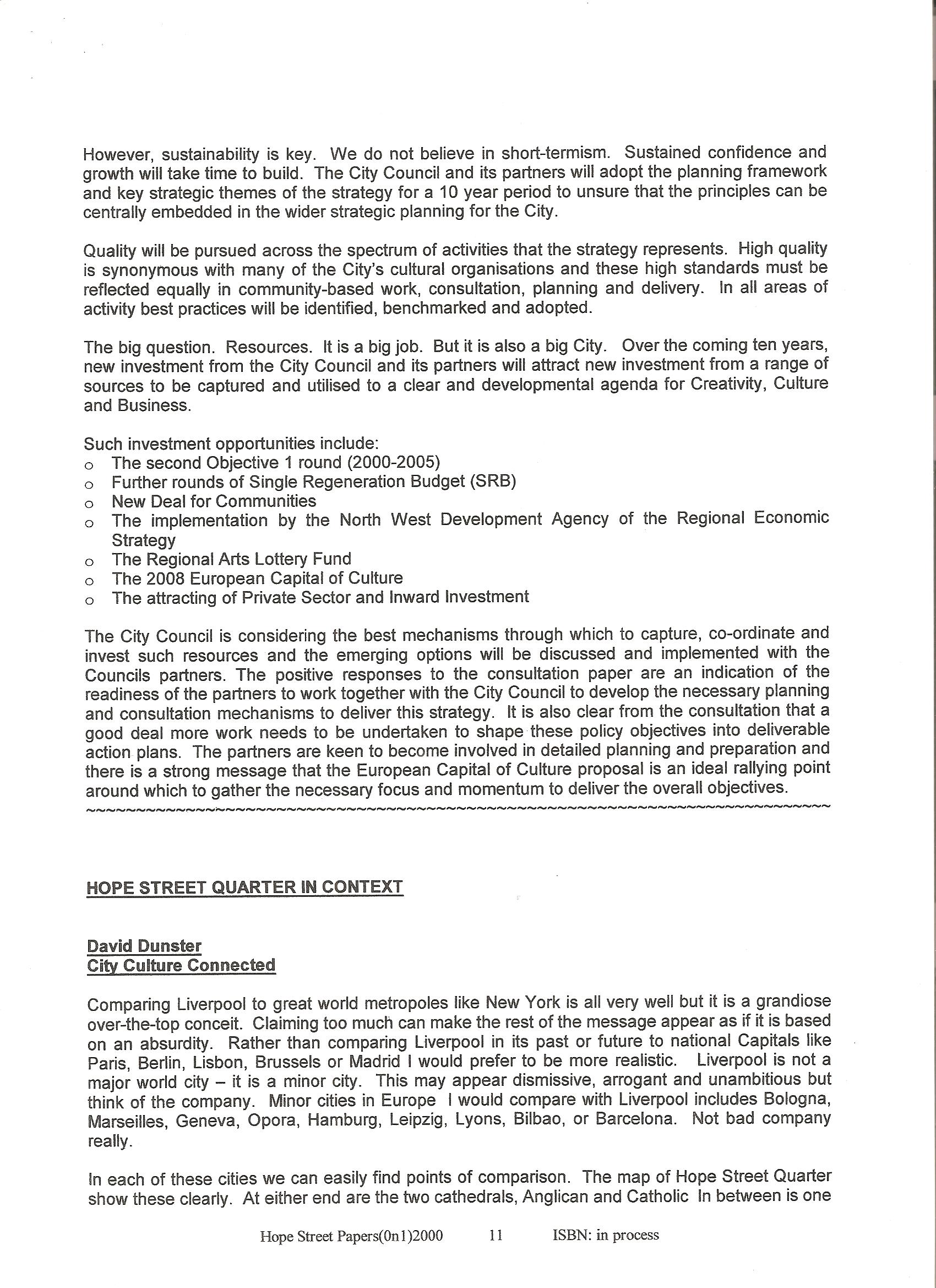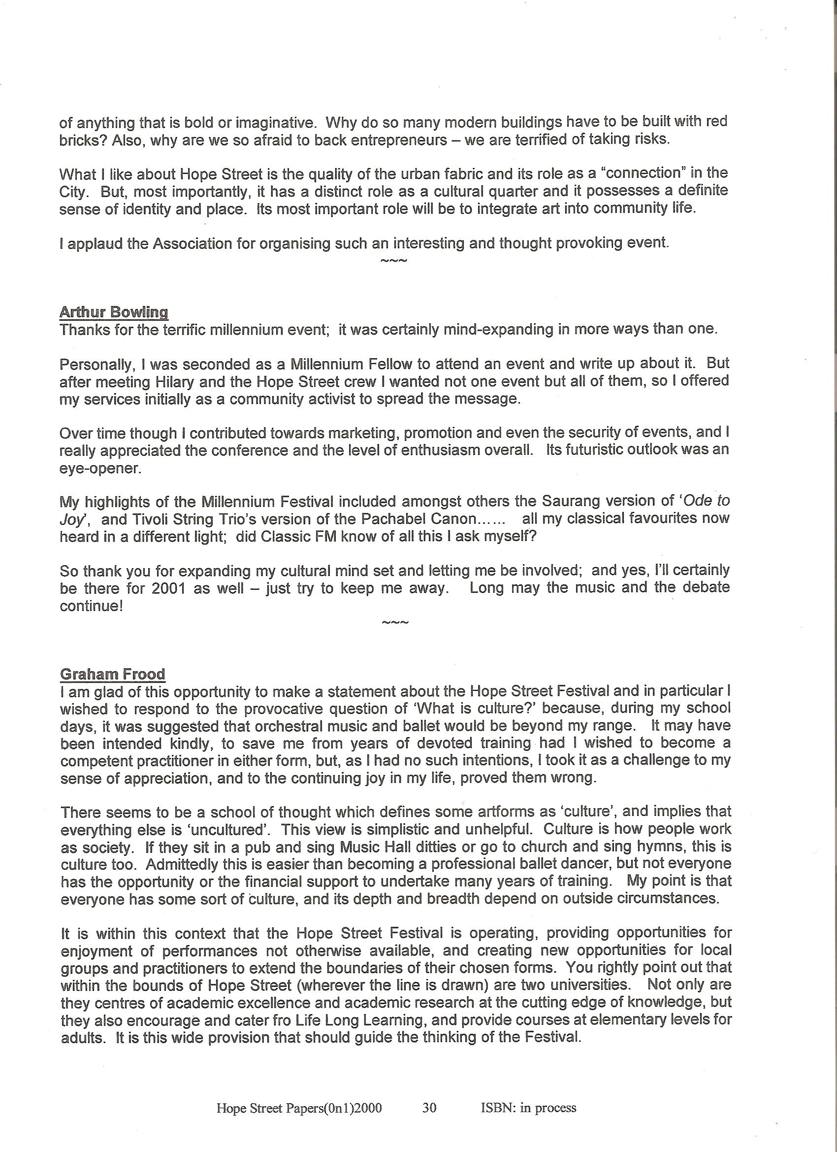 Their efforts led to the development of the Hope Street Papers in 2000 (www.hilaryburrage.com/the-hope-street-papers-1999-2001/) which laid the groundwork for the development of the area. HOPES also developed these proposals via the dozen annual Hope Street Festivals – the HOPES Millennium Festival was chosen by the Millennium Commission as their national exemplar – and many other community engagement and stakeholding events which the charity created and delivered.