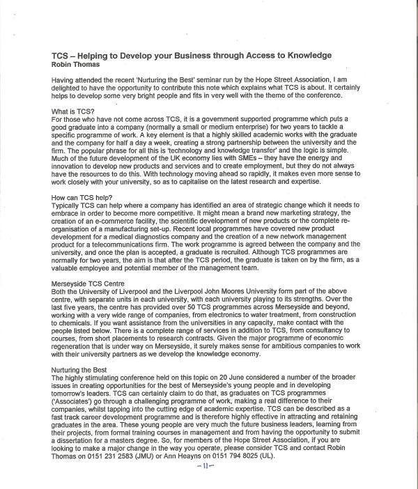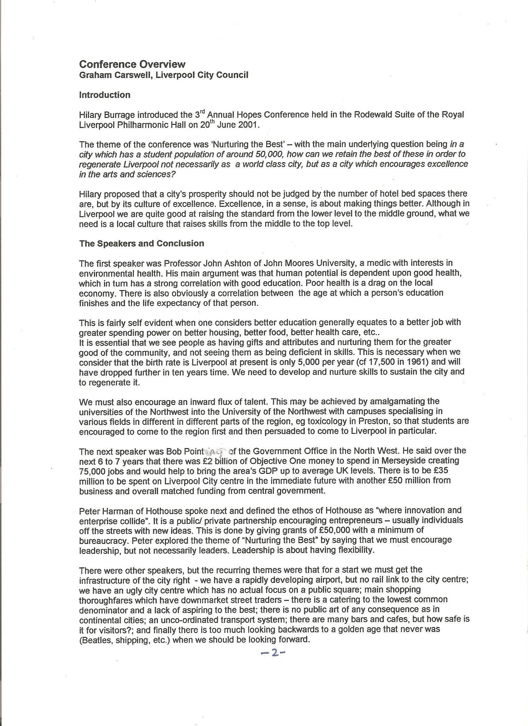 They held a number of conferences in the city – in the run-up to and immediate aftermath of the Millennium – to explore how the potential of the area could be unlocked.